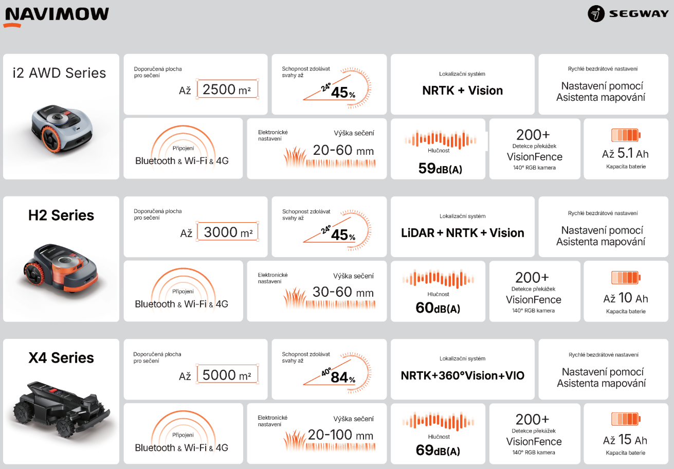 - Detekce překážek: VisionFence™ (140° RGB kamera + LiDAR)