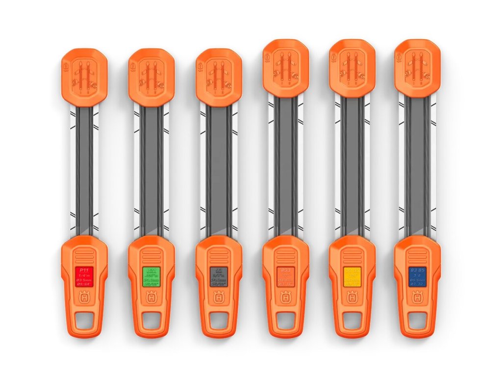 Ostřicí nástroj 2 v 1 Husqvarna pozvedne údržbu řetězu na novou úroveň, protože pokaždé zajistí efektivní ostření řetězu s přesnými a spolehlivými výsledky. Inovativní konstrukce umožňuje současně brousit řezné i omezovací zuby, což šetří čas i práci. Barevné označení rozteče řetězu a značky úhlů pilníku zajišťují velice plynulé a přímočaré ostření, protože stačí pracovat v jednom směru. Když potřebujete pilníky vyměnit, stačí jednoduše otevřít horní víko, takže údržba vodítka pilníku je rychlá a bezproblémová.