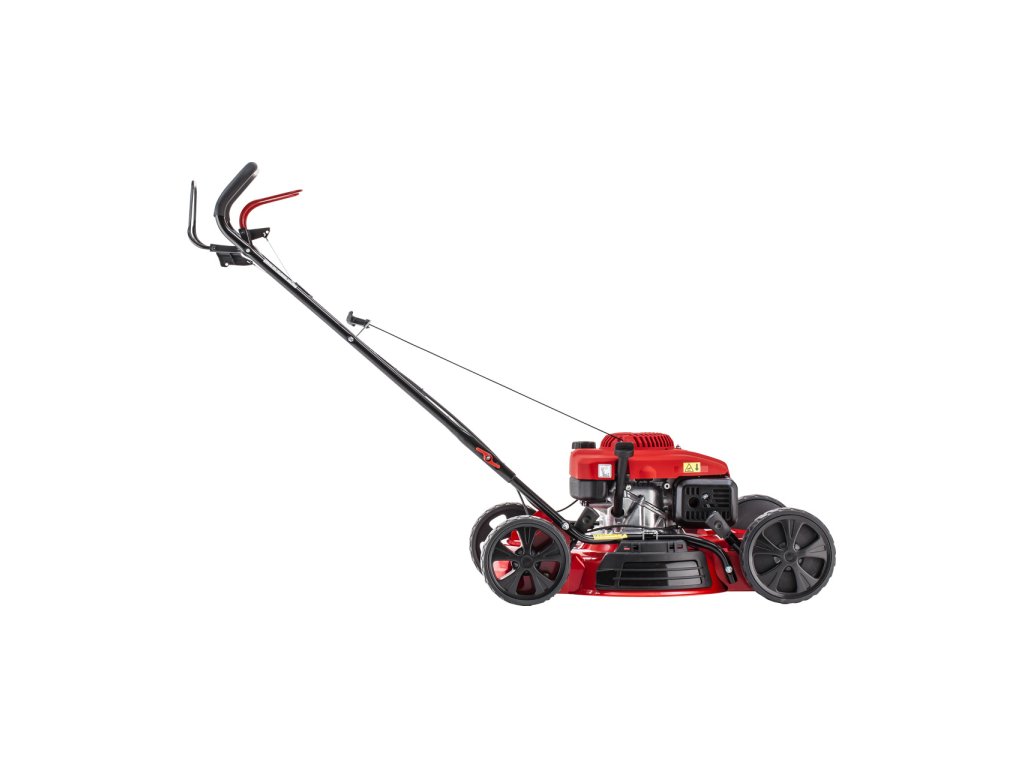 Ergonomicky tvarovaná řídítka a XL kola s hladkým chodem šetrná k trávníku usnadňují práci.