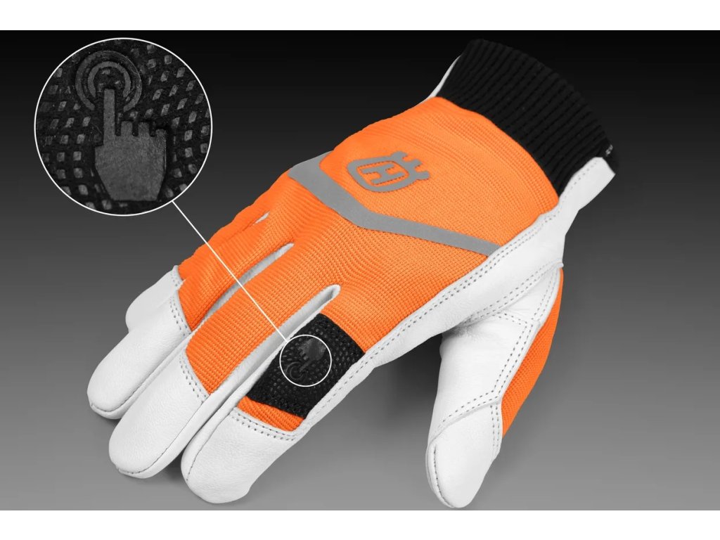 Polstrování chrání ruce proti nárazům, vibracím a otlačeninám, zatímco elastická manžeta zabraňuje pronikání nečistot. Reflexní logo zvyšuje viditelnost a materiál na pravém ukazováčku umožňuje ovládání dotykových zařízení bez sundání rukavic. Splňuje EN 388: 2016. Dostupné velikosti 6, 7, 8, 9, 10 a 12.