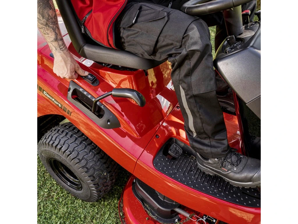 Další výhodou z hlediska komfortu jsou snadno dostupné ovládací prvky, bezstupňový nožní hydrostat a nízký nášlap včetně dostatku prostoru pro nohy. Velké 18" zadní pneumatiky zajišťují dobrou přilnavost a dobrý postup na jakémkoli povrchu a v jakémkoli terénu.