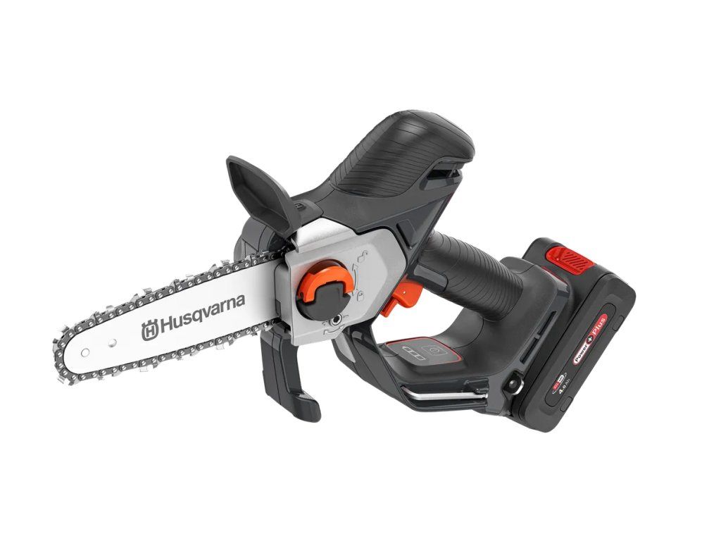 Pilka používá akumulátor z 18V akumulátorového systému aliance POWER FOR ALL, díky kterému lze jeden akumulátor použít pro nástroje a vybavení více značek. Uskladnění v menších prostorech je usnadněno přibaleným háčkem vyrobeným na míru, který lze připevnit na zeď nebo použít se systémem úložných kolejnic Husqvarna Aspire™.